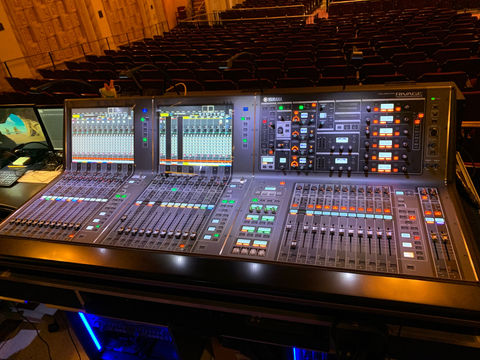 SAV developed a solution to employ a Yamaha PM7 mixing console system with 80x56 I/O running at 48KHz over a Dante 144 channel transport system. This system integrated with the client’s existing Yamaha CL5 and Rio3224 I/O to make a House and Monitor console system using gain sharing.